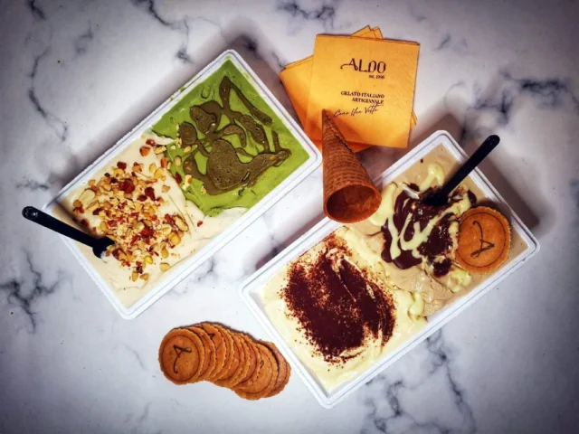 בין הגלידות של אלדו תמצאו גלידות על בסיס שמנת, גלידות סורבה, גלידות טבעוניות ואפילו גלידות ללא סוכר, כולן ללא חומרים משמרים או צבעי מאכל. מחיר כדור גלידה עומד על 18 ש"ח ומחיר קילו גלידה על 95 ש"ח.
