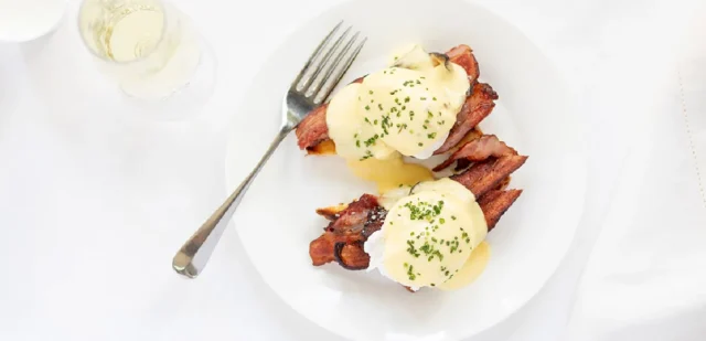 בנוסף כל סועד זכאי לבחור מנה עיקרית מבין מבחר מנות כמו ביצים נוסח בנדיקט עם בייקון והאם על בריוש ביתי ורוטב הולנדייז; ביצים נוסח פלורנטין עם תרד מאודה על בריוש ביתי ורוטב הולנדייז או ביצים נוסח רויאל עם סלמון מעושן על בריוש ביתי ורוטב הולנדייז.