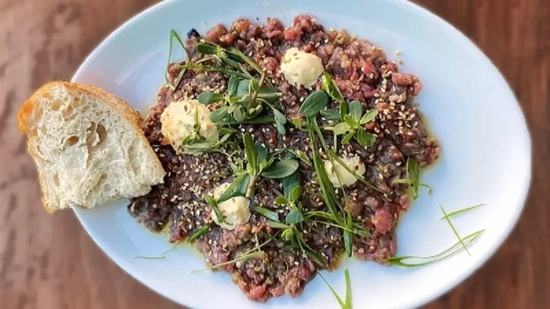 בר אוכל בעתו בשוק תלפיות בחיפה | צילום: יפעת ירושלמי, יחסי ציבורבין המנות שהוגשו בתפריט המתחלף של בעתו מאז פתיחתו אפשר למצוא טרטר בקר וחצילים שרופים עם איולי לימון כבוש; שרימפס מאודה במעטפת בצק, חמאה ויין ולבן; טונה אורטיז ואיולי זעתר על ברוסקטה; קרודו דג בויניגרט תה צמחים; קרפצ'יו עגבניות שרי ומגי; דג ים כבוש באחו בלנקו; רוסט שייטל פרוס דק ועוד.