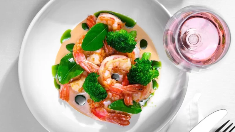 גאמברי צרובים במסעדת דל מאר של שף עידו מלכין | צילום: אנטולי מיכאלובמנות הביניים תוכלו לטעום מנות כמו נתחי מוסר ים מטוגנים בחמאת מיסו עם טוגרישי ועשבים; תמנון על הפלאנצ'ה עם תפוחי אדמה, דמיגלאס, קולי צ'ילי וקרם פרש; טונה צרובה פרוסה עם קרם פרש וחמאת ליים וצ'ילי; קלאמרי ממולא בגבינת עיזים, כרישה, קרם שום, לאבנה ופרמזן או גאמברי צרובים ביין לבן, כפיר ליים, צ'ילי, חמאת שום וברוקולי (66-82 ש"ח).