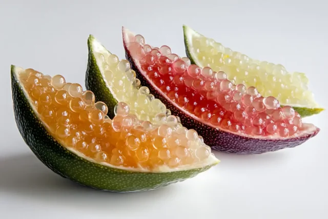 לאחר שתפתחו את לימון הקוויאר, הקסם יתגלה – פנינים קטנטנות שמזכירות קוויאר. הפנינים העסיסיות הללו מתפקעות בטעמי הדר חמוצים במיוחד בכל נגיסה, מה שיוצר חוויית טעם שקשה לשכוח.