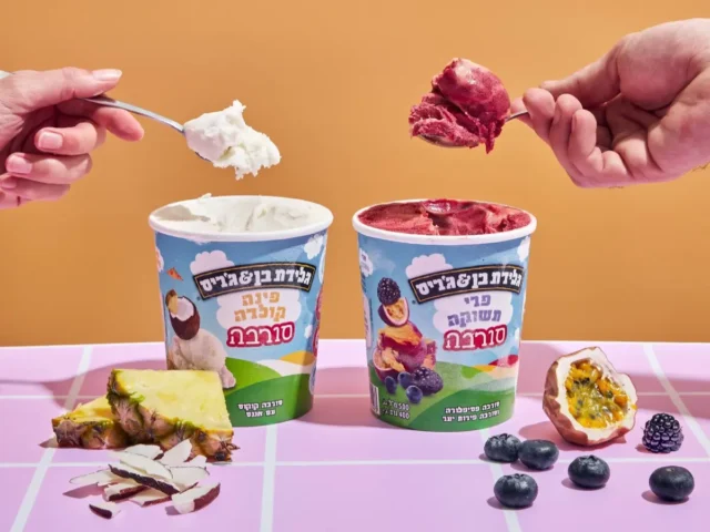 בן אנד ג'ריס ישראל משיקים 2 טעמים טבעוניים פרווה וללא גלוטן בסדרת הסורבה. מדובר בגלידה בטעם פינה קולדה עם סורבה קוקוס ואננס ופיסות אננס קפוא וסורבה בטעם פסיפלורה ופירות יער. כל פיינט מכיל סווירלים וצ'אנקים של חתיכות פרי במרקמים שונים.