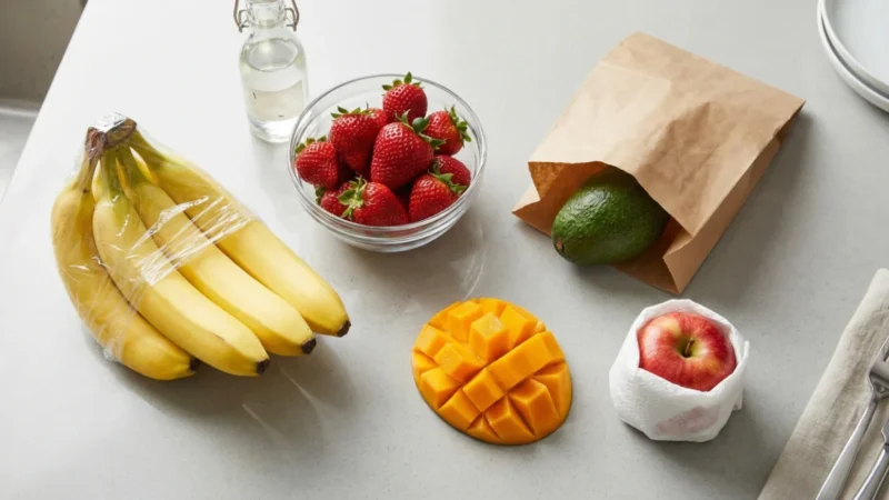 קניתם בננות ירוקות ואתם צריכים אותן אתמול לעוגת בננות? עשו בדיוק את הפעולה ההפוכה: לכדו את האתילן. הכניסו את הבננות לשקית נייר חומה (לא ניילון!) יחד עם תפוח או עגבנייה (שגם הם פולטי אתילן). סגרו את השקית והניחו על השיש. תוך 12-24 שעות הן יהיו רכות ומוכנות.