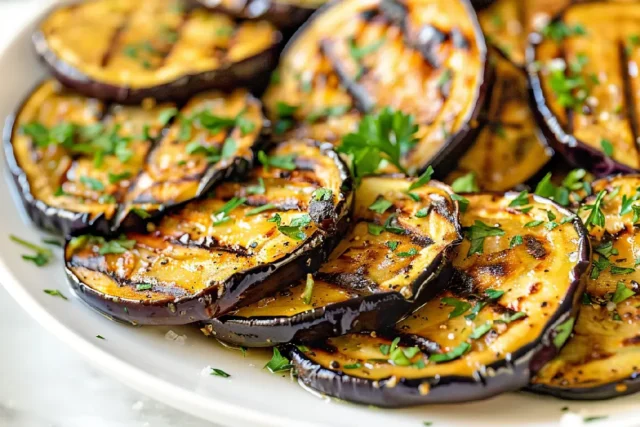 הברישו צד אחד של בשר החציל בשמן והוסיפו מיד למחבת החמה. לאחר כמה דקות הברישו גם את הצד השני בשמן והפכו.