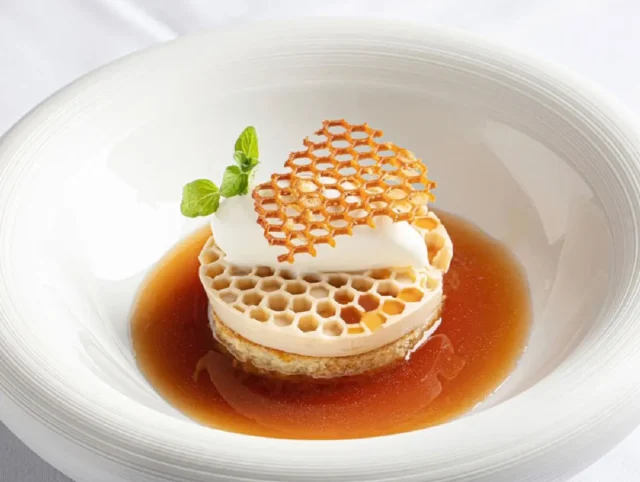 בין המנות תמצאו ריזוטו גריסי פנינה וחמאה חומה ושקדי עגל בגלייז שום שחור ופאף גריסי פנינה; קפלטי גבינות רכות עם חמאת אגוזי מלך וברזאולה פיקניה/אקופה ועוד. לקינוח יוגש מלבי פודינג שמן זית עם ריבת הדרים וגלידת מרציפן.