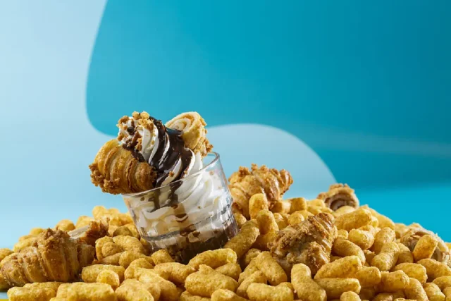 שוקולידה – גלידת סאנדיי, קורנפלקס מקורמל, גנאש שוקולד חלב ורוגלעך שוקולד.