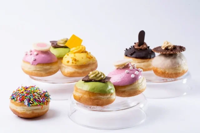 סופגניית אמרטי קפה עם גאנש אמרטו קפה, גלסאז' נואר, עוגיות אמרטי ואגוזי לוז בקרמל. סופגניית אמרטי פיסטוק עם וריגטו פיסטוק וקצפת, גלסאז' פיסטוק, עוגיות אמרטי ופיסטוק גרוס. סופגניית PURE VANILLA עם קרם פטיסייר וניל, פניני קראנץ', תלתלי שוקולד לבן, גאנש מסקרפונה וצ'ייסר וניל.
