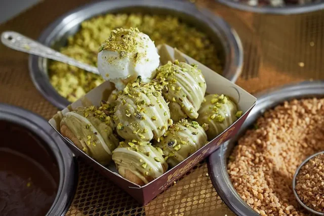לוקומדס במבחר מילויים, טעמים ורטבים ברשת יוגוס | צילום: יח"צהלוקומדס מגיעות עם יוגורט יווני טבעי חלבי, טבעוני או בטעם פסיפלורה והם הולכות מצוין גם עם הגלידה הטורקית של המקום עם מתיקות מעודנת. את כל הלוקומדס מציעים ביוגוס גם בגרסא טבעונית למהדרין.